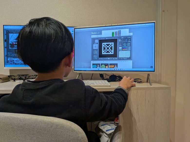 マインクラフトは、ゆしん君は前回の続きでブロック作成を行っています。やり方も覚えたようで、一人でスムーズに作成出来ていましたよ!しおん君も、作成を開始しています。作る乗り物を決めて、ドット絵でブロックの面2つ作成しました。乗り物の画像をみながらスムーズに作成出来ていましたよ!フォルダーを作成し、そこに作ったファイルを移動させました。次回はファイルを複製させ、テキストコーディングを行っていきます。