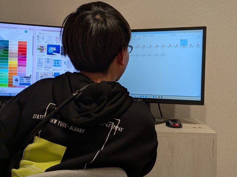 マインクラフトは、ゆしん君ブロック作成こだわって作っています。作成ファイルが多いので、その分ファイルを複製したりファイル名を変えたりするのが大変で、本人も途中から集中力がきれかかっていましたが、最後まで頑張っていました!!しおん君も、ファイル名の変更が完了しましたよ!
